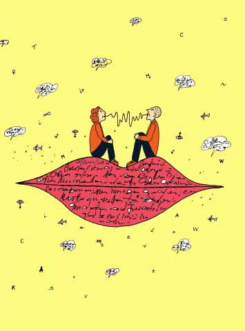 Α: (αφαιρείται τώρα και κοκκινίζει) Ο Ρικ είναι ... το αγόρι μου ... ο συνοδός μου γι' απόψε. Πρέπει να τελειώσω το μακιγιάζ μου, θα έρθει όπου νάναι. Δρ. Ν: Άκου, Σαμ, είμαι σίγουρος ότι μπορείς να συνεχίσεις να μου μιλάς ενώ βάφεσαι γιατί δεν θέλω να σε καθυστερήσω. Πες μου, η σχέση με τον Ρικ είναι σοβαρή; Α: (κοκκινίζει πάλι) Ου, ουου ... αλλά δεν θέλω να του δείξω ότι βιάζομαι. Κάνω τη δύσκολη. Ο Ρικ το παίζει μεγάλος εραστής, αλλά εγώ ξέρω ότι με θέλει. |