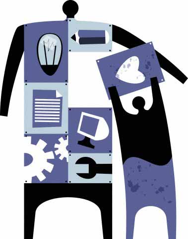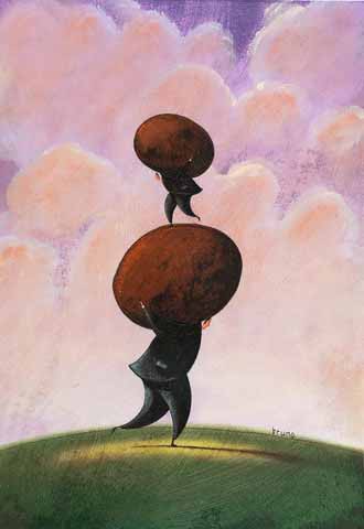 Δρ. Ν: Ποια είναι η δικιά σου; Α: Φοβάμαι να πειραματιστώ με τη δύναμή μου. Μου αρέσει να δουλεύω σε άνετες συνθήκες όπου ξέρω ότι μπορώ να σχεδιάσω κάτι τέλεια. Ένας από τους νέους μου φίλους είναι το ακριβώς αντίθετο. Παράγει μια ποσότητα καλής συμπαντικής ύλης και μετά απλά πηδάει μέσα της και ύστερα εμφανίζει κάτι αλλόκοτο: «αχρηστεύει» την ατμόσφαιρα έτσι ώστε να μη μπορεί να αναπνεύσει εκεί κανενός είδους ζωή. Συνεχώς μπλέκεται μέσα σε σύνθετα σχέδια που είναι πάνω απ' τις δυνάμεις του. Δρ. Ν: Μπορείς να μου εξηγήσεις πώς αρχίζεις εσύ, προσωπικά, ένα κατασκευαστικό σχέδιο μέσα στην τάξη; Α: Πρώτα οραματίζομαι αυτό που θέλω. Το συνθέτω προσεκτικά στο μυαλό μου για να λάβω ένα καθαρό αποτύπωμα. Με τη νέα μου ομάδα μαθαίνουμε πώς να χρησιμοποιούμε την κατάλληλη ποιότητα της ενέργειας για τις αντίστοιχες κατασκευές σε μεγάλη κλίμακα. Με τον Έιροβ δούλευα αποσπασματικά ενώ ο Μπαατάκ θέλει όλα να αποτελούν ένα αλληλοσυνδεόμενο όλον. Δρ. Ν: Άρα, ο αλληλο-συσχετισμός των ενεργειακών στοιχείων είναι σημαντικός τόσο για τη μορφή όσο και για την ισορροπία της δουλειάς σου. Α: Απολύτως! Η διαδικασία αρχίζει πάντα με τη φωτεινή ενέργεια αλλά θα πρέπει να υπάρχει και αρμονία στο σχέδιο, καθώς και να κατευθύνεται σε πρακτικές εφαρμογές, (ξεσπάει σε γέλια) Δρ. Ν: Γιατί γελάς; |