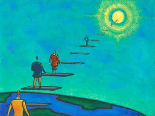 Είχα ψυχές που ήταν με τις κύριες ομάδες τους για περίπου 50.000 χρόνια πριν να παρουσιαστούν έτοιμες να μετακινηθούν προς τα μέσα επίπεδα, ενώ ένα πολύ μικρότερο ποσοστό έχει κατακτήσει αυτό το στάδιο της εξέλιξης μέσα σε 5.000 χρόνια. Από τη στιγμή που θα φτάσουν στο Επίπεδο III, διαπιστώνω ότι οι ψυχές αρχίζουν να ανεβαίνουν πολύ πιο γρήγορα στα προχωρημένα επίπεδα. Οι ψυχές εξελίσσονται με διαφορετικούς ρυθμούς ενώ κατά τη διαδρομή τους επιδεικνύουν μία ποικιλία ταλέντων. Παρατηρώ ότι όταν οι ψυχές αρχίζουν να ξοδεύουν λιγότερο χρόνο στην ψυχαγωγία και την κοινωνικοποίηση, εργάζονται σκληρότερα και εστιάζονται περισσότερο στην τελειοποίηση ορισμένων δεξιοτήτων οι οποίες θα συνεισφέρουν στις δυνάμεις της συμπαντικής συνειδητότητας. Οι τρεις βασικοί παράγοντες που γνωρίζω ότι παίζουν ρόλο στην επιλογή εξειδίκευσης της ψυχής είναι το ταλέντο, οι προηγούμενες επιδόσεις και η προσωπική επιθυμία. Στην αρχή, οι συναθροίσεις των πιο ειδικευμένων αυτών ψυχών γίνονται με χαλαρό ρυθμό. Τις έχω χαρακτηρίσει ανεξάρτητες ομάδες μελέτης. Η εκπαίδευση αρχίζει αργά, σε περιοδική βάση, με δασκάλους διαφορετικών ειδικοτήτων. Έτσι δίνεται στους εκπαιδευτές η δυνατότητα μιας περιόδου αξιολόγησης των ψυχών. Η ανεξάρτητη μελέτη δίνει μεγαλύτερη έμφαση στην προσωπική κατεύθυνση της κάθε ψυχής, η οποία γίνεται ακόμα πιο φανερή καθώς εξελίσσονται στα Επίπεδα IV και V. |