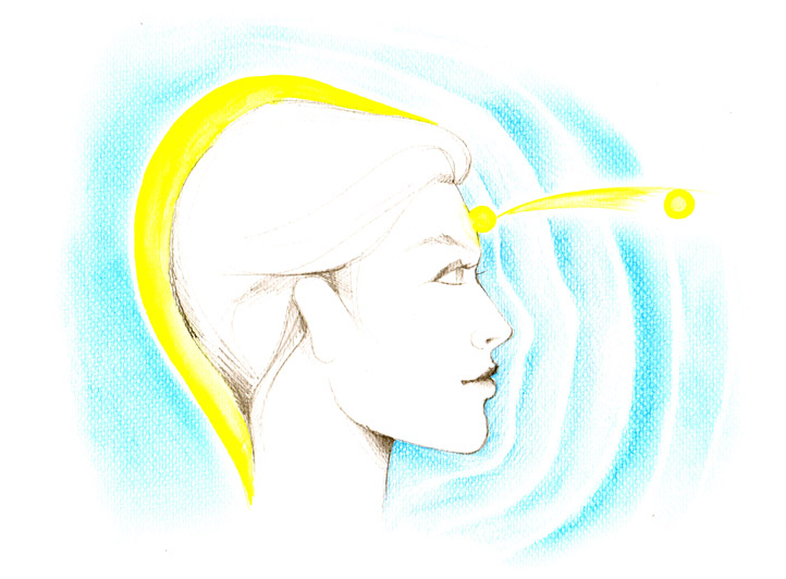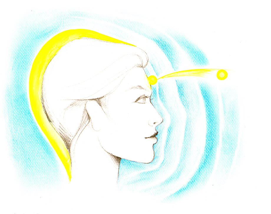 Ταυτόχρονα βλέπω να φεύγει λευκόχρυσο Φως από το σημείο του μετώπου της, ανάμεσα στα μάτια, και