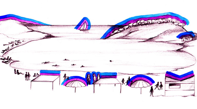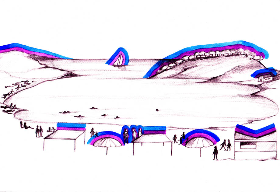 Παραλία, Σεπτέμβρης 2001. Ολόκληρη η παραλία γύρω από κάθε περίγραμμα έχει και τα δύο αυτά αυρικά στρώματα που έχω δει στη φίλη: σκούρο μπλε-μωβ και μπλε ρουά. Έχει καλύψει με την αύρα της ολόκληρη την παραλία; Έτσι είναι. Πάντοτε ξαναελέγχω αυτό που βλέπω πολλές φορές, για να είμαι σίγουρη.