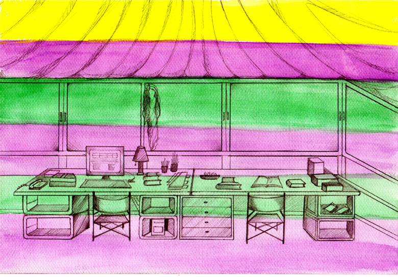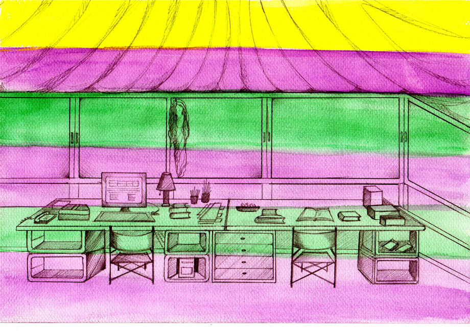 Δεκέμβρης 2001. Βράδυ, στο γραφείο της φίλης η οποία μεταφράζει το βιβλίο του Michael Newton, «Το Ταξίδι των Ψυχών». Στα τζάμια του δωματίου βλέπω απόλυτα γεωμετρικές και πεντακάθαρες λωρίδες φωτός, χρώματος μωβ, πράσινου, μετά πάλι μωβ και πάλι πράσινου, μέχρι την οροφή, όπου εμφανίζεται και μία κίτρινη λωρίδα. Ο χώρος είναι γεμάτος από αυτές τις λωρίδες φωτός με τα χρώματα, τις διαστάσεις και τις αναλογίες - σε σχέση με το δωμάτιο - όπως ακριβώς είναι ζωγραφισμένες. Μου περνά η σκέψη ότι το γυαλί βοηθά στο να βλέπω ευκολότερα την αύρα, κάτι που αποδεικνύεται γεγονός πολλές φορές στο μέλλον. Σκέφτομαι πόσες ακόμα υπέροχες εικόνες θα πρέπει να υπάρχουν στην πνευματική συχνότητα που δεν μπορούμε να δούμε...