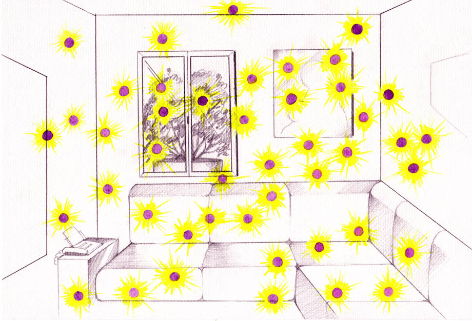 Ολόκληρος ο χώρος του δωματίου έχει γεμίσει με σφαιρίδια από φως βιολετί.
