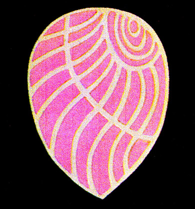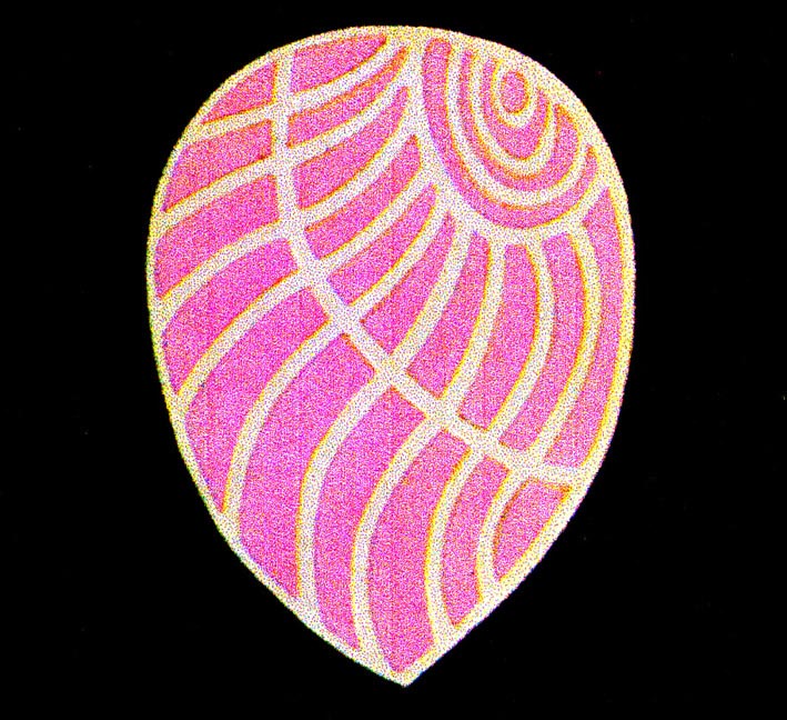 Τα χρώματα είναι διαφορετικά, αλλά φαίνεται ότι και αυτό το κογχύλι είναι σύμβολο. Αυτό που βλέπω στην κορυφή του κεφαλιού της φίλης, έχει το σχήμα του κογχυλιού που ονομάζεται πορφύρα. Από αυτό έβγαζαν την χρωστική ουσία που έβαφαν τα υφάσματα στην αρχαία Ελλάδα, στη Ρώμη και στο Βυζάντιο. |
