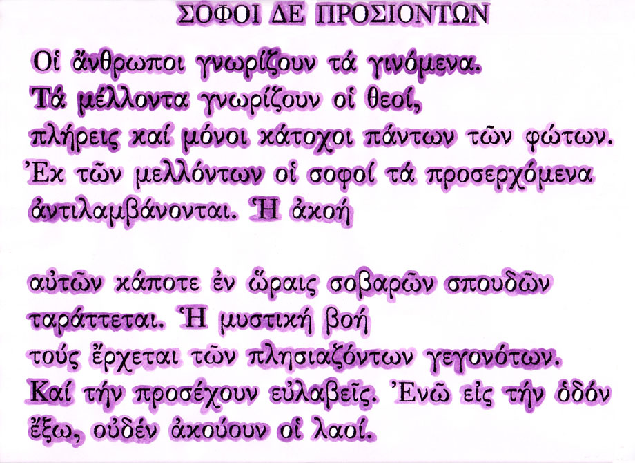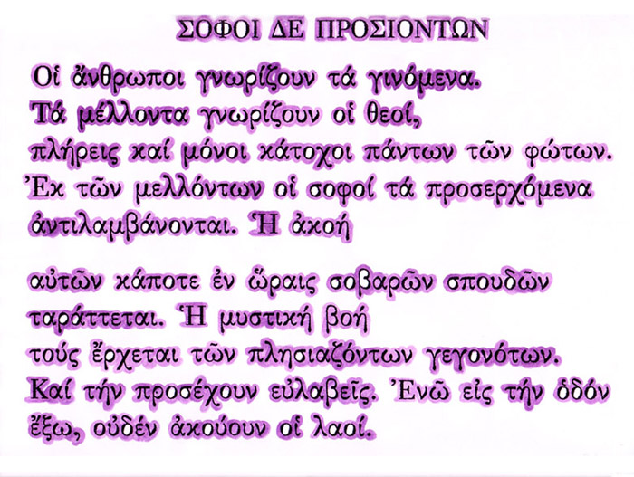 Στην εικόνα έχουμε αποτυπώσει την αύρα, ακριβώς όπως εμφανίζεται γύρω από τα γράμματα, σε ένα από τα ποιήματα του Καβάφη.