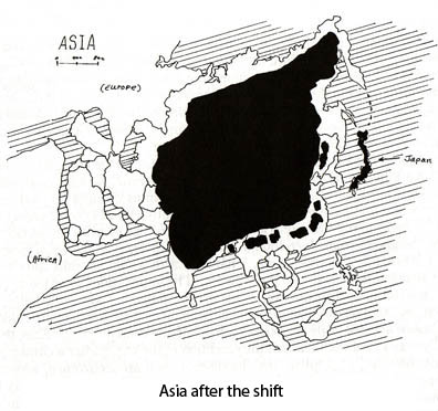 Most of China will be islands created from the present mountain tops. Maybe when the center part of Russia rises it will cause China to drop. The flatlands will be totally underwater, but he says the water will be shallow enough that if the Chinese people wanted to they could build dikes, pump the water out, and reclaim the land as they do in Holland. He knows that the lowlanders in Holland and Belgium have made their country grow quite a bit by building dikes and pumping the water out. The Chinese can make the land habitable again, if they want to do the work.