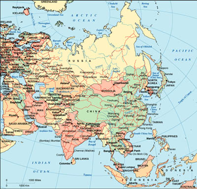 India will be underwater up to the foothills of the Himalayas. This will be the new shoreline which continues up through the mountains of Nepal and Tibet, and angles across the northeast part of Russia.