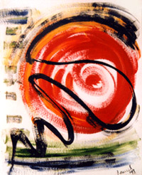 Η κορυφή του τριγώνου ωθεί προς τα έξω, πάνω, εμπρός, ενάντια στη δύναμη της εντροπίας. Στο εσωτερικό της πυραμίδας έχω τοποθετήσει ένα τόξο που συμβολίζει αυτή την εξωθητική εξελικτική δύναμη, αυτό «το κάτι» που έχει με τόση επιτυχία και συνέπεια αψηφήσει τον «φυσικό νόμο» για εκατομμύρια γενεές, και που πρέπει κι αυτό να αποτελεί ένα φυσικό νόμο που δεν έχει ακόμα οριστεί. |