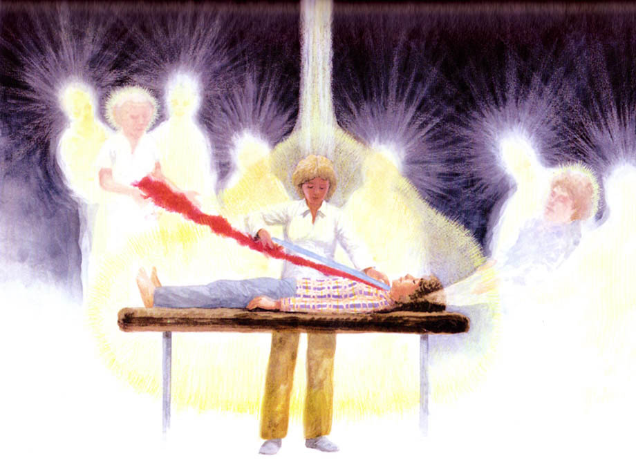 Shortly afterwards I felt an inner certainty that I had actually seen the Masters. My conviction was also strengthened by a coincidence: in Barbara Brennan's book "Hands of Light" I found the presentation of such corresponding forms. The actual depiction of this book that I show at the bottom, presents the ethereal bodies of guides and it's very close to the image I saw myself. |