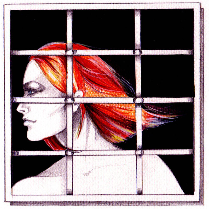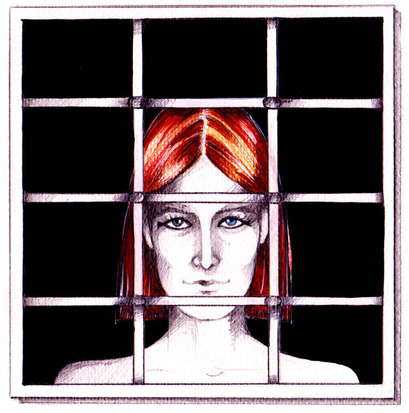 indeed from the specific window, which has rails, so the figure seemed imprisoned. Then the